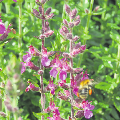 • Zwerg-Gamander (Teucrium): Zwerg-Gamander bilden dichte, niedrige Teppiche und wachsen eher langsam. Über dem kräftig grünen Laub erfreuen im Sommer rosa-purpurnen Blüten den Betrachter. Die Pflanzen lieben trockene, kalkhaltige Böden in vollsonniger Lage.